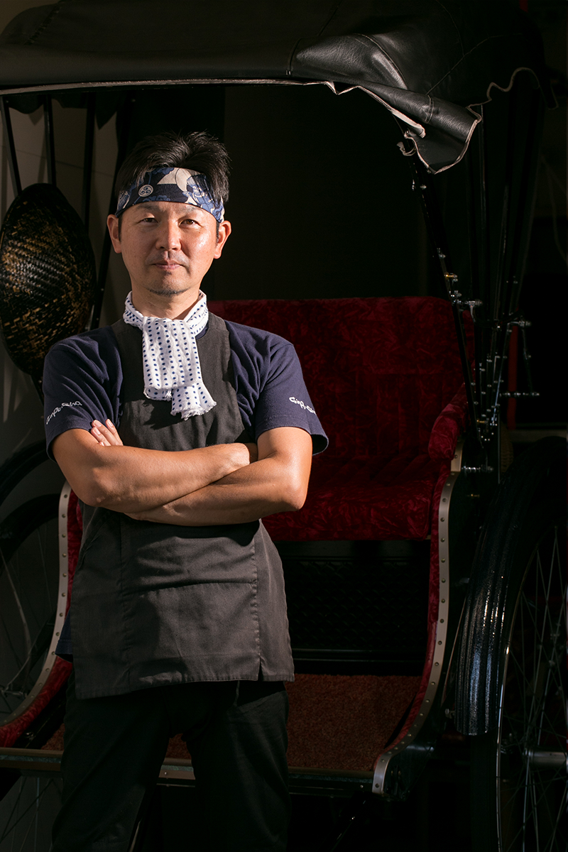 平成27年現在、郡上八幡で1台だけの観光人力車になります