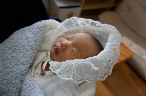 2016.01.18 表情の変化 目次: もう一週間ほど前になりますが、蒼ちゃん退院しました。 「病院を出る時、何を着せるか?」 おさがりで沢山服を頂いたので、レースひらひらを着せてみました。 ぷっ。ぷぷっ。(*´з`)=3 笑えます ブカブカやし レース折り曲げて、ライオンのたてがみ風で退院となりました♪ 基本、「寝る」「ミルク」「オムツ交換」の繰り返しですが、時折見せる表情に癒されます 定番は舌出しですね。 う~ん!かわいい♪ 「ほぉ~」な表情も多くなってきました♪ また写真いっぱい撮ってこ